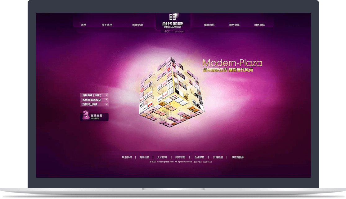 网站主视觉采用交互技术,有效传达当代商城整体品牌形象。