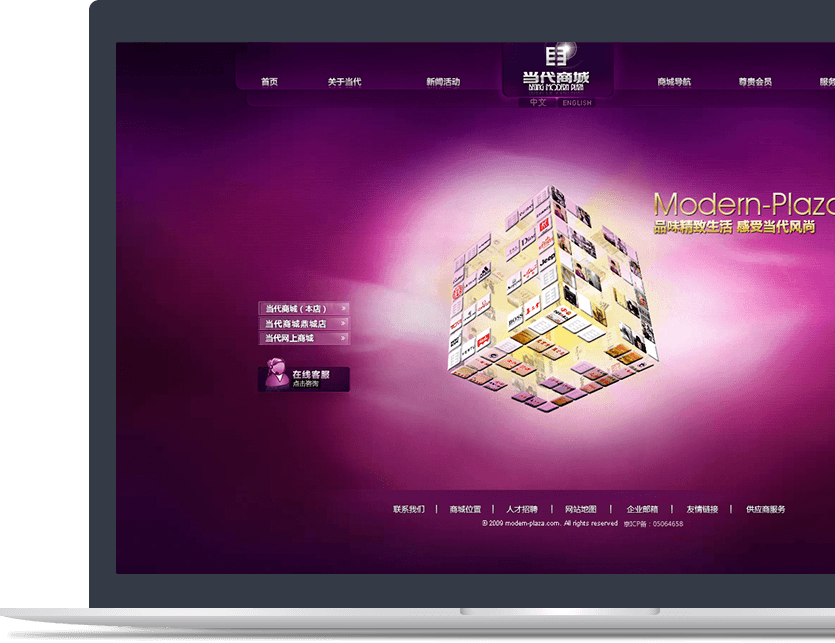 网站整体以时尚、简约和前卫为主体风格,和当代商城“品牌立店,前卫经营”