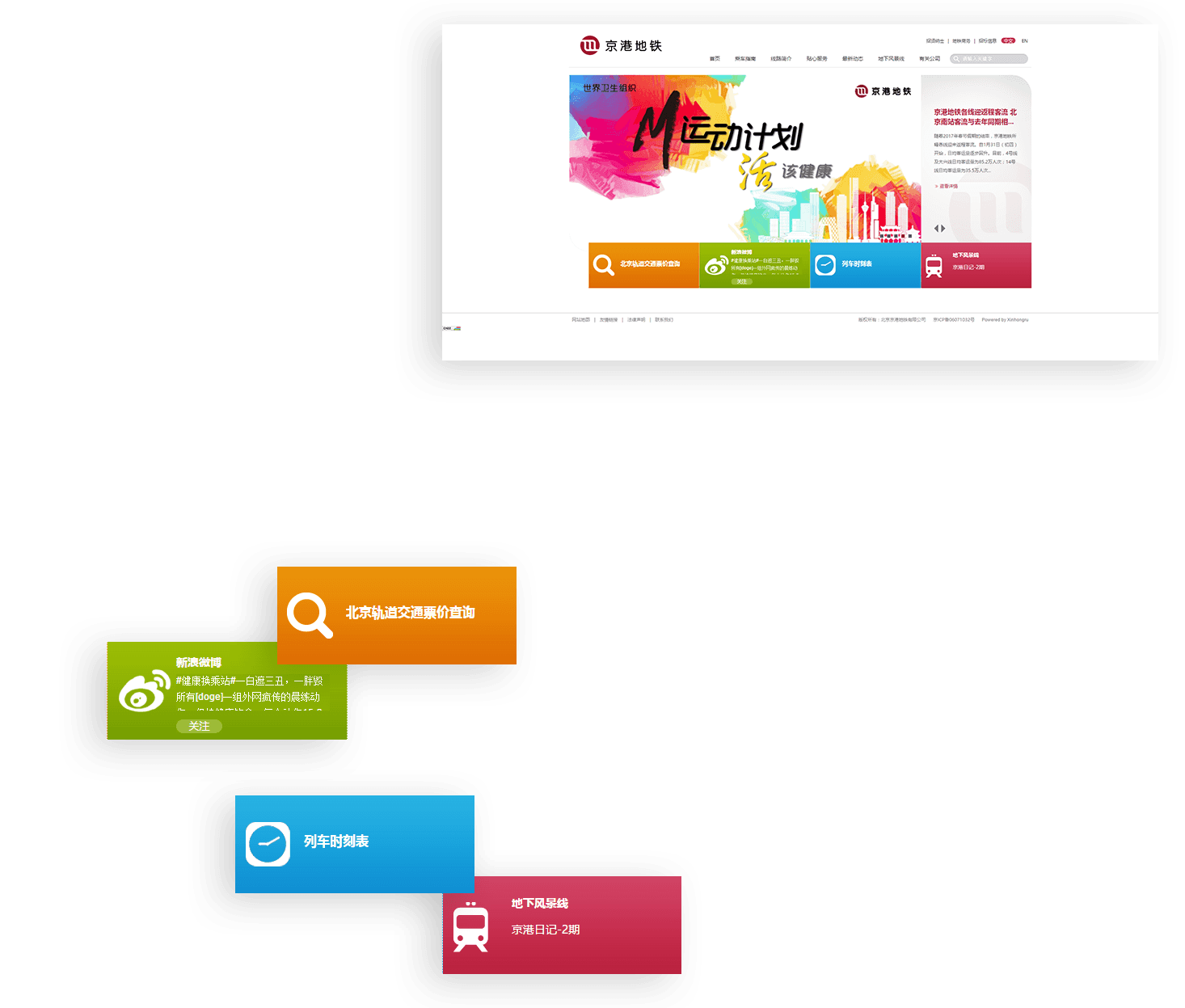 网站整体清新活泼、用色明亮,呈现品牌活力。同时,网站实现路线时时查询功能