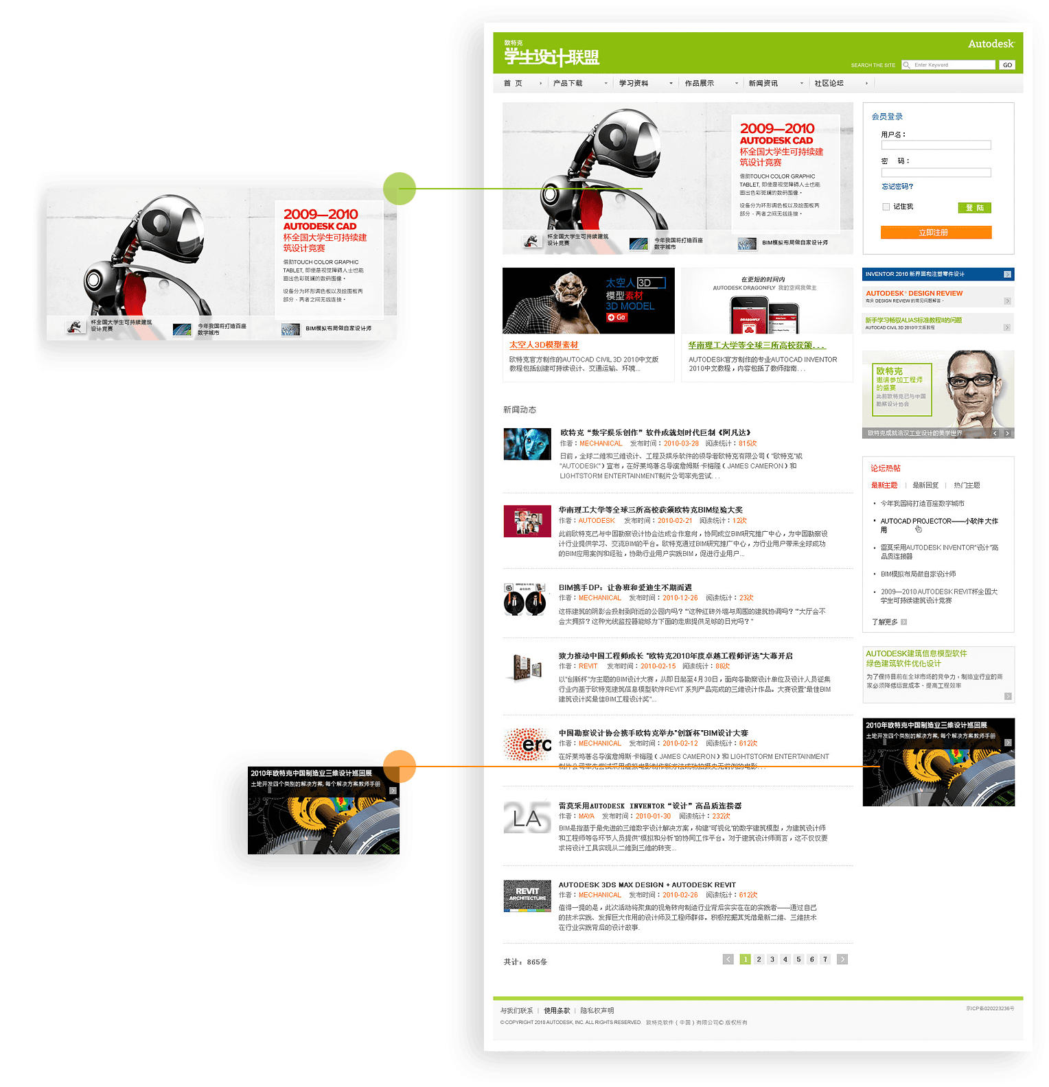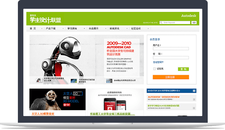 欧特克学生设计联盟网站以平台运营思 路为核心,设置多个主题活动、营销互动功能模 块为后续平台发展奠定基础。同时,九游(中国)一站式服务官方网站长期为其提 供运维服务支持,保障社区平台稳定运营。