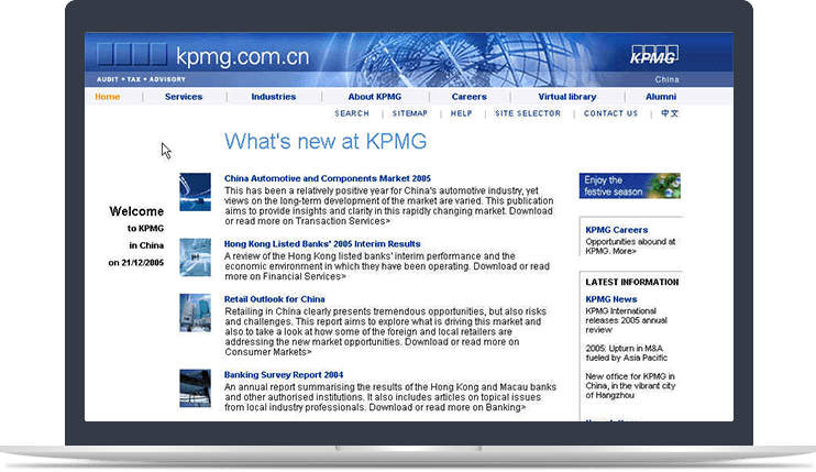 九游(中国)一站式服务官方网站结合会计行业做事严谨、信息明了的特点,为毕马威打造以“信息”为主体的品牌官网