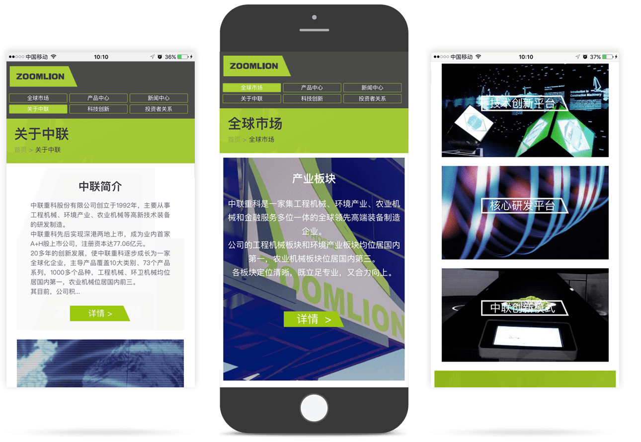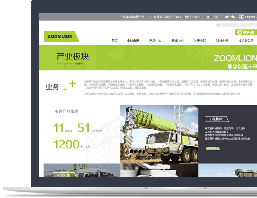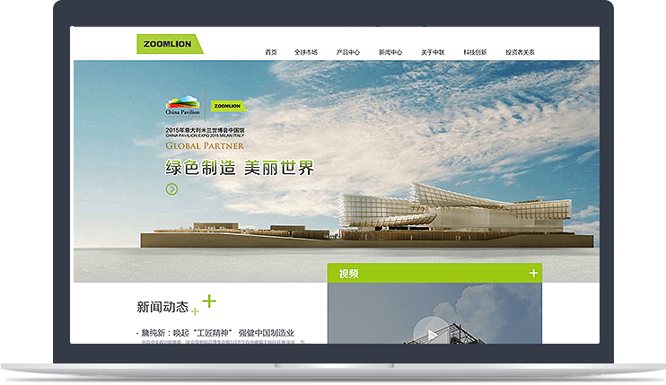 网站针对【关于中联】频道采用图片、文字、视频等多种元素结合的表现方式,塑造更加立体、多元、多维度的企业形象。