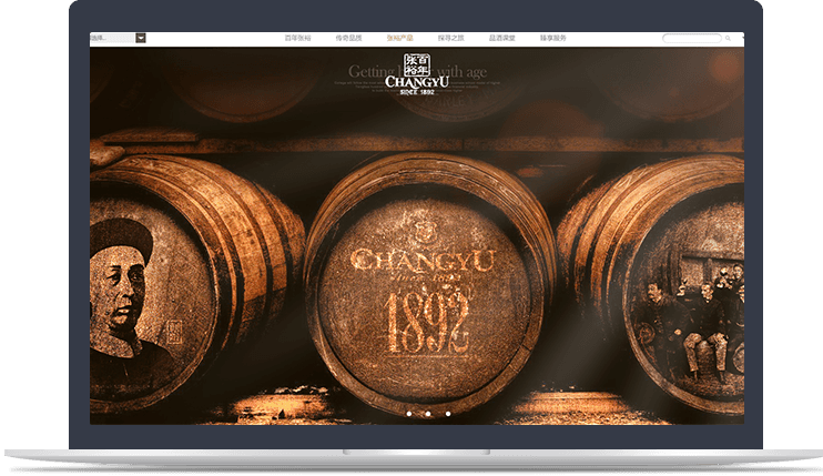 网站设计将传统工艺感与现代科技感有机融合,氤氲着葡萄酒文化以及百年中国古典韵 味,彰显百年张裕的独特品质感。