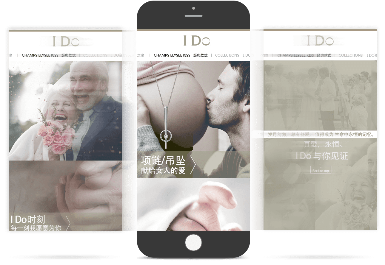 从结构布局、色彩搭配,到文案创意、图片应用, 每一个环节都倾心设计,以近乎苛刻的要求让页面精益求 精。这是I DO 和我们的精工主义。