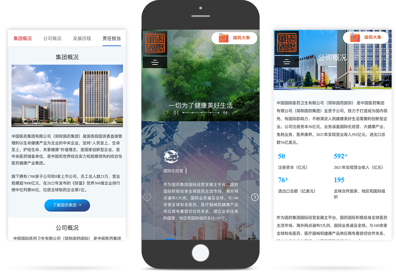 中国国际医药卫生有限九游网(简称国药国际)是中国医药集团有限九游网(简称国药集团)全资子九游网, 致力于打造成为国内领先、有国际影响力、不断满足人民健康美好生活需要的创新型企业。