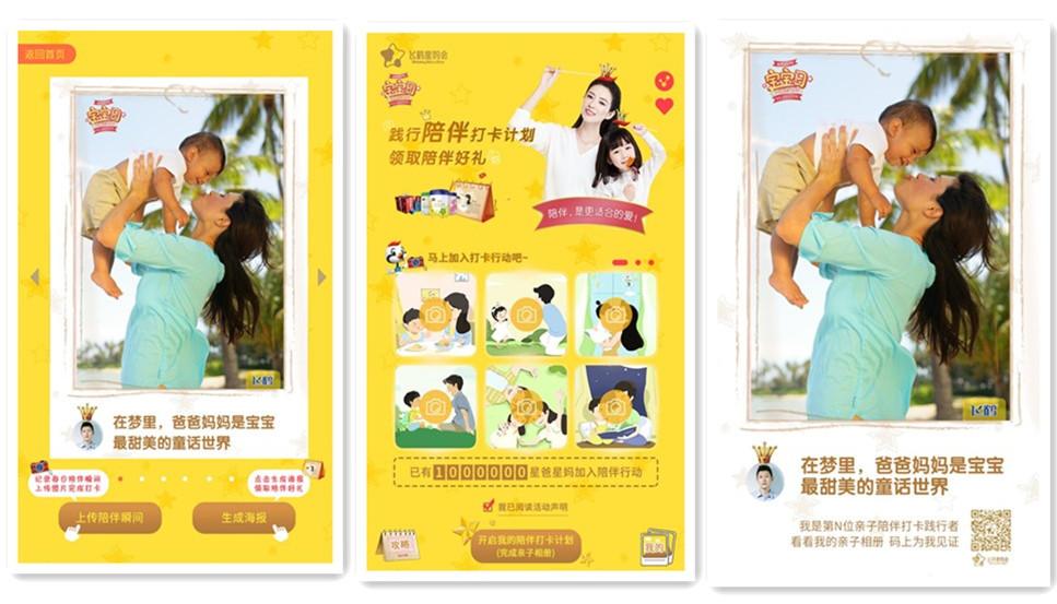 今年是飞鹤倡议“5.28中国宝宝日”的第二年,飞鹤从陪伴号召升级为陪伴指引,打造更适合的陪伴范本。通过H5互动,线上+线下有机联动,发起了全民陪伴行动:线上陪伴习惯养成打卡。引导宝爸宝妈每天上传自己陪伴宝宝的瞬间,即刻生成专属海报,不仅可以在社交网络进行分享、晒亲子照,还可参加抽奖、邀请好友助力。 7天一个循环,21天养成陪伴宝宝的好习惯。